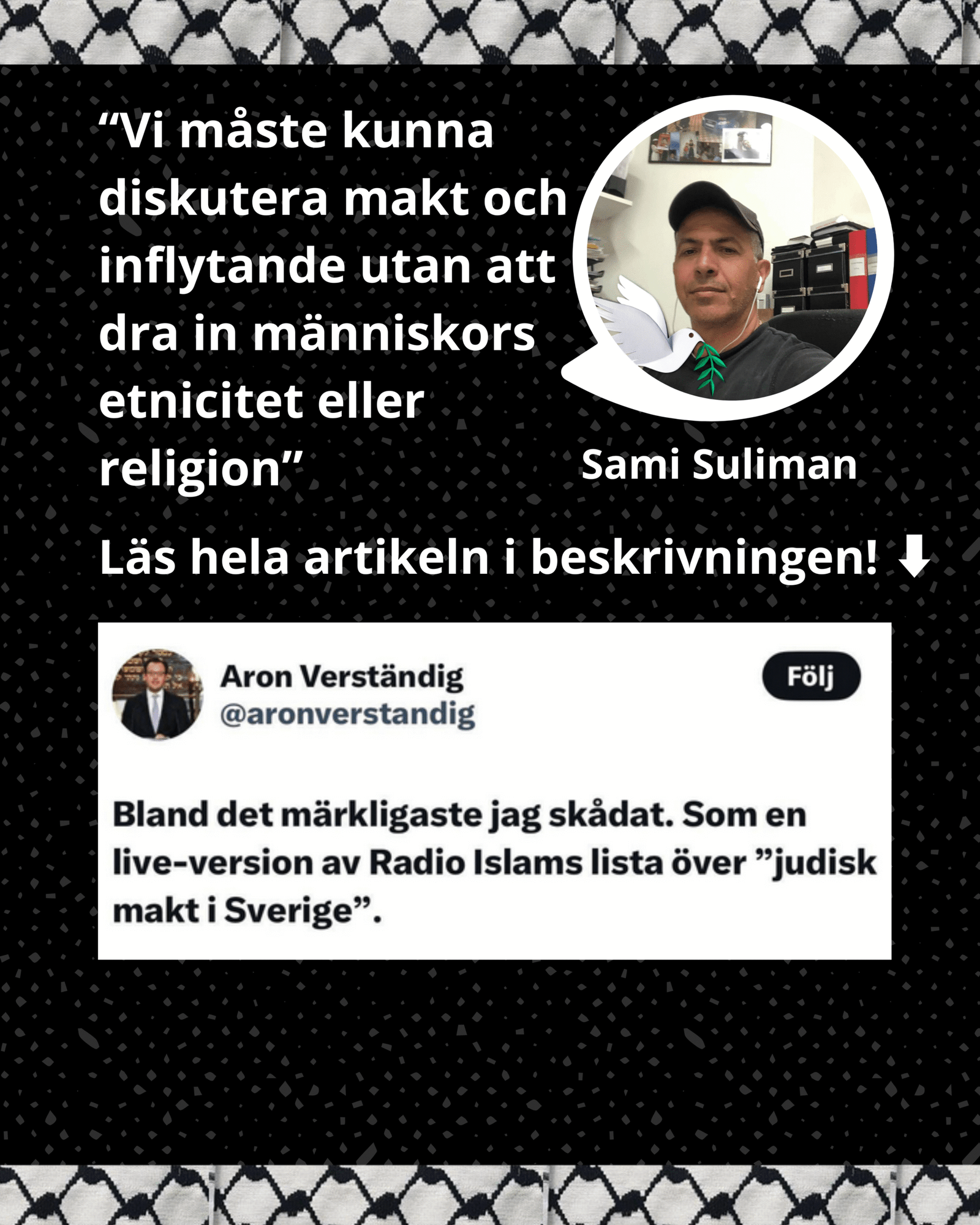 26 apr, 2025 Artikel Det är fullständigt felaktigt att påstå att jag skulle ha en ‘lista över judisk makt’ – det är något jag aldrig har uttryckt eller antytt.