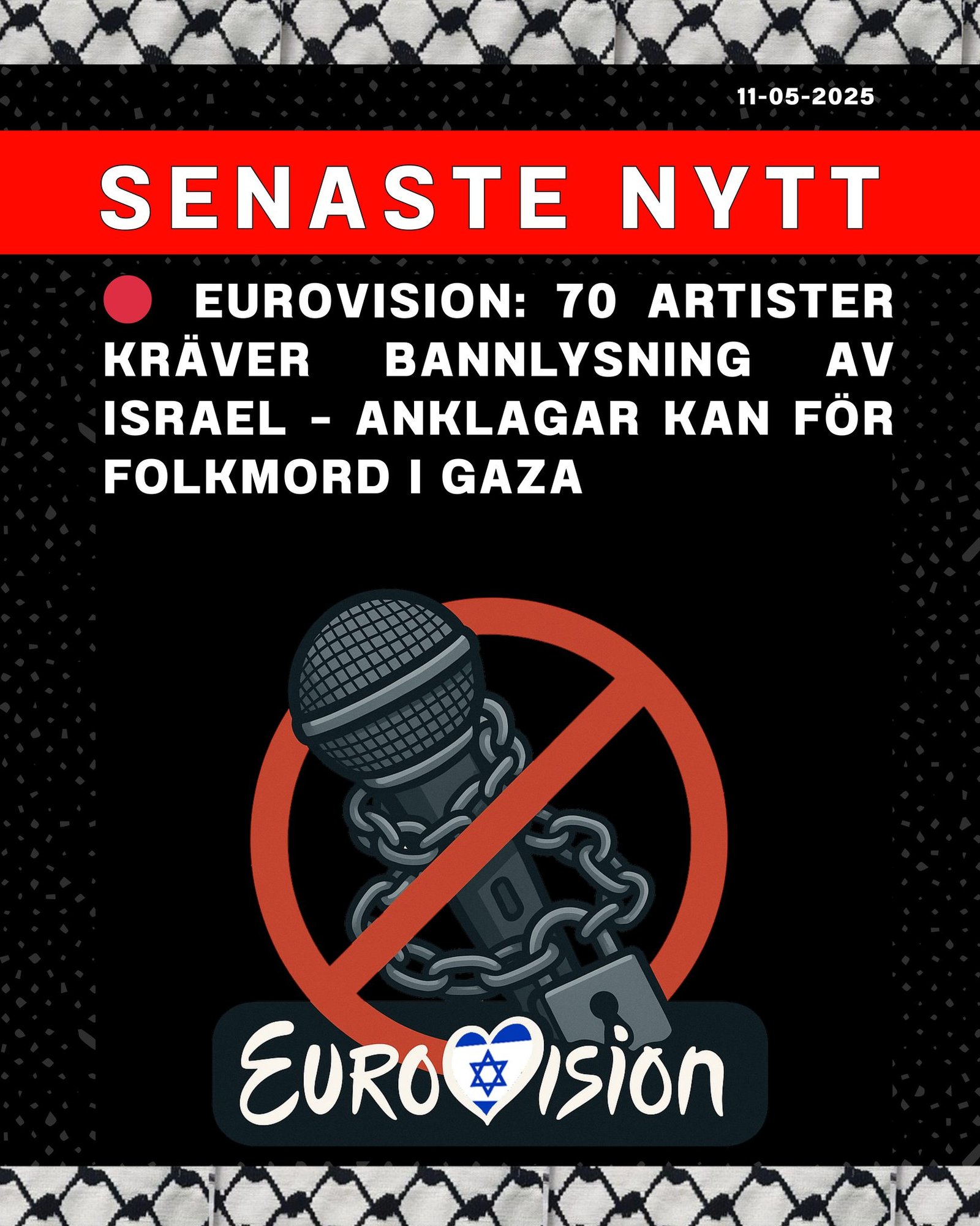 11 maj, 2025 Senaste nytt Eurovision: 70 artister kräver bannlysning av Israel – anklagar KAN för folkmord i Gaza!”