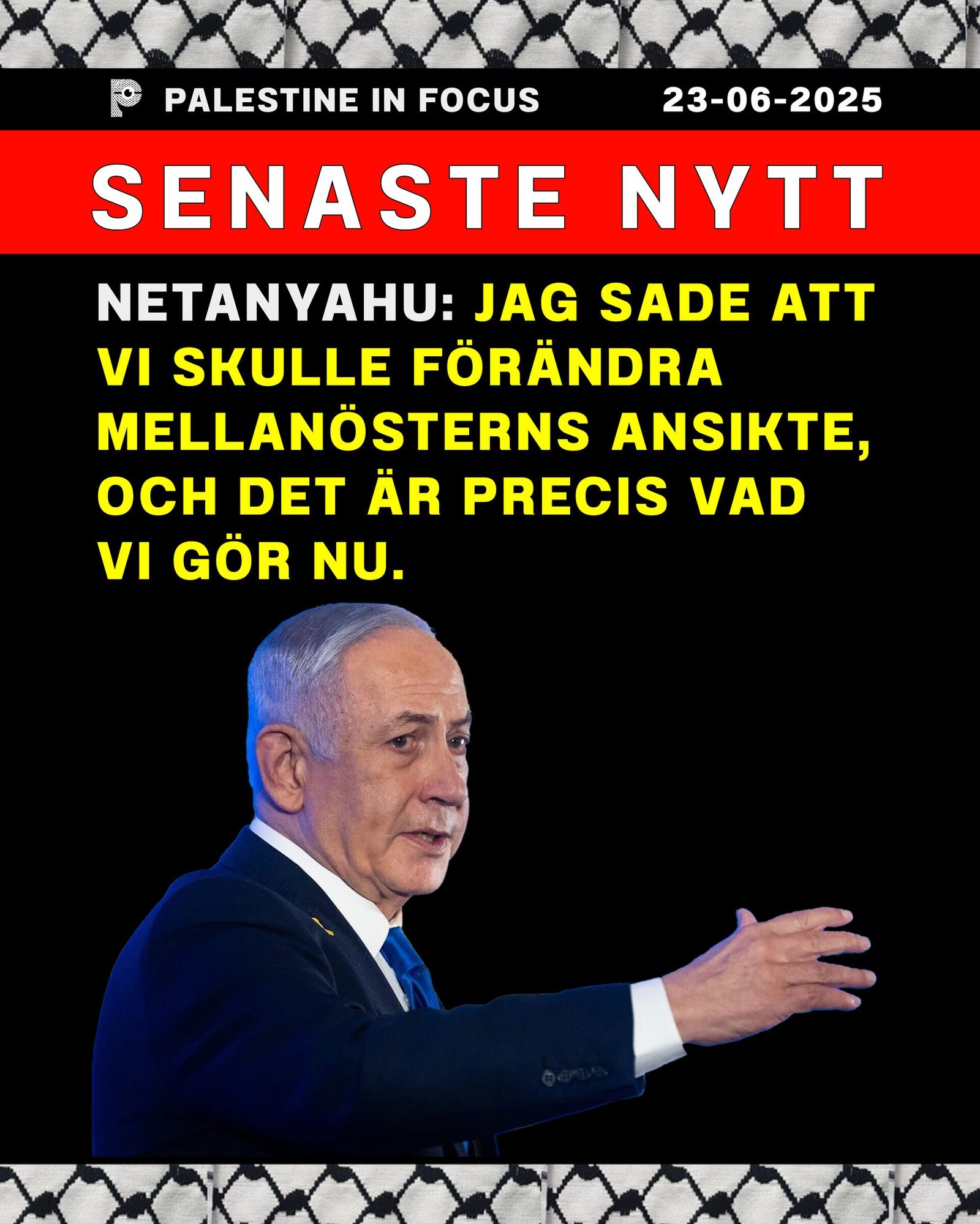 23 jun, 2025 Senaste nytt Netanyahu: Jag sade att vi skulle förändra Mellanösterns ansikte, och det är precis vad vi gör nu.