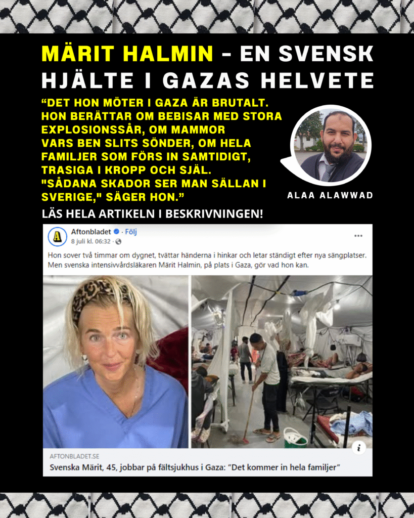 I södra Gaza, där bomberna aldrig tycks tystna och människorna kämpar för att överleva i ruinerna av sitt eget liv, finns en kvinna som valt att stå kvar när andra vänt ryggen. Hon heter Märit Halmin, intensivvårdsläkare från Stockholm, men för många palestinier i dag är hon något mycket mer: ett hopp i en tid utan nåd.