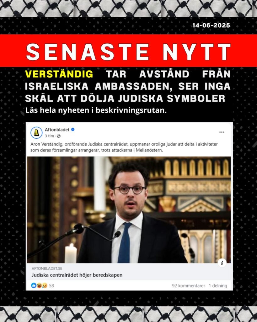 Verständig tar avstånd från israeliska ambassaden, ser inga skäl att dölja judiska symboler